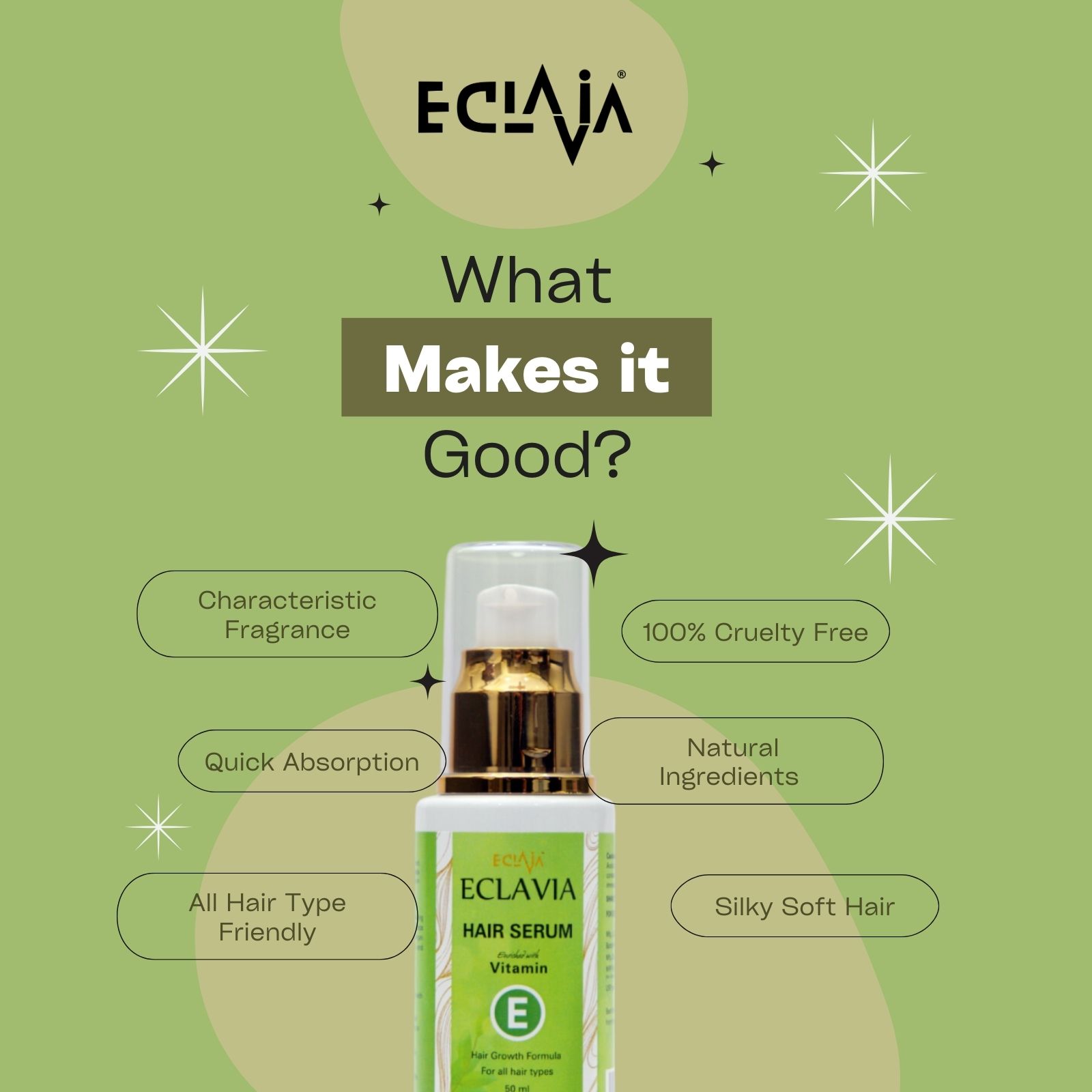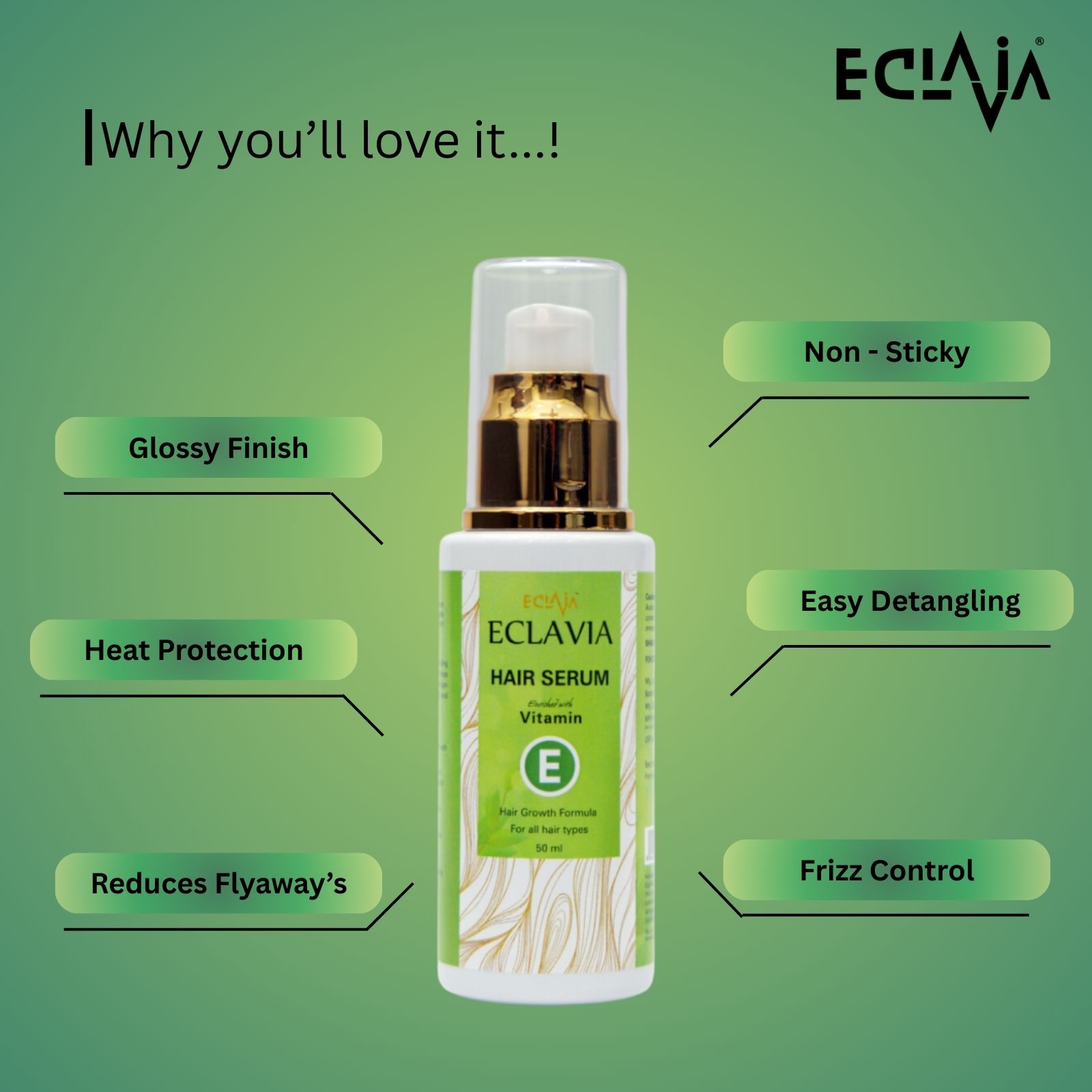 Experience luxurious hair care with ECLAVIA Hair Serum, crafted to nourish, smooth, and restore your hair’s natural shine. This lightweight, non-sticky formula instantly tames frizz, softens dry ends, and adds silky smoothness without weighing hair down. Each drop deeply hydrates and protects strands, making hair look healthy, glossy, and salon-styled every day.