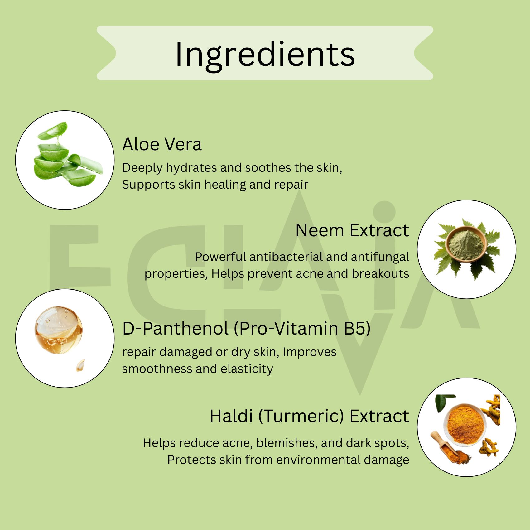 - Haldi Extract: Brightens skin & reduces marks