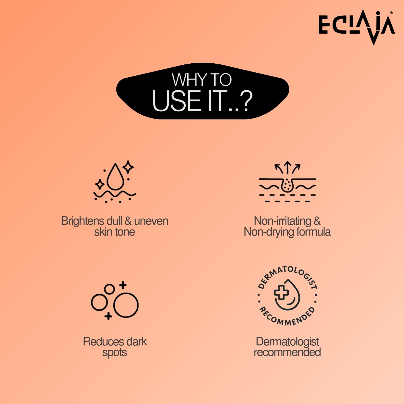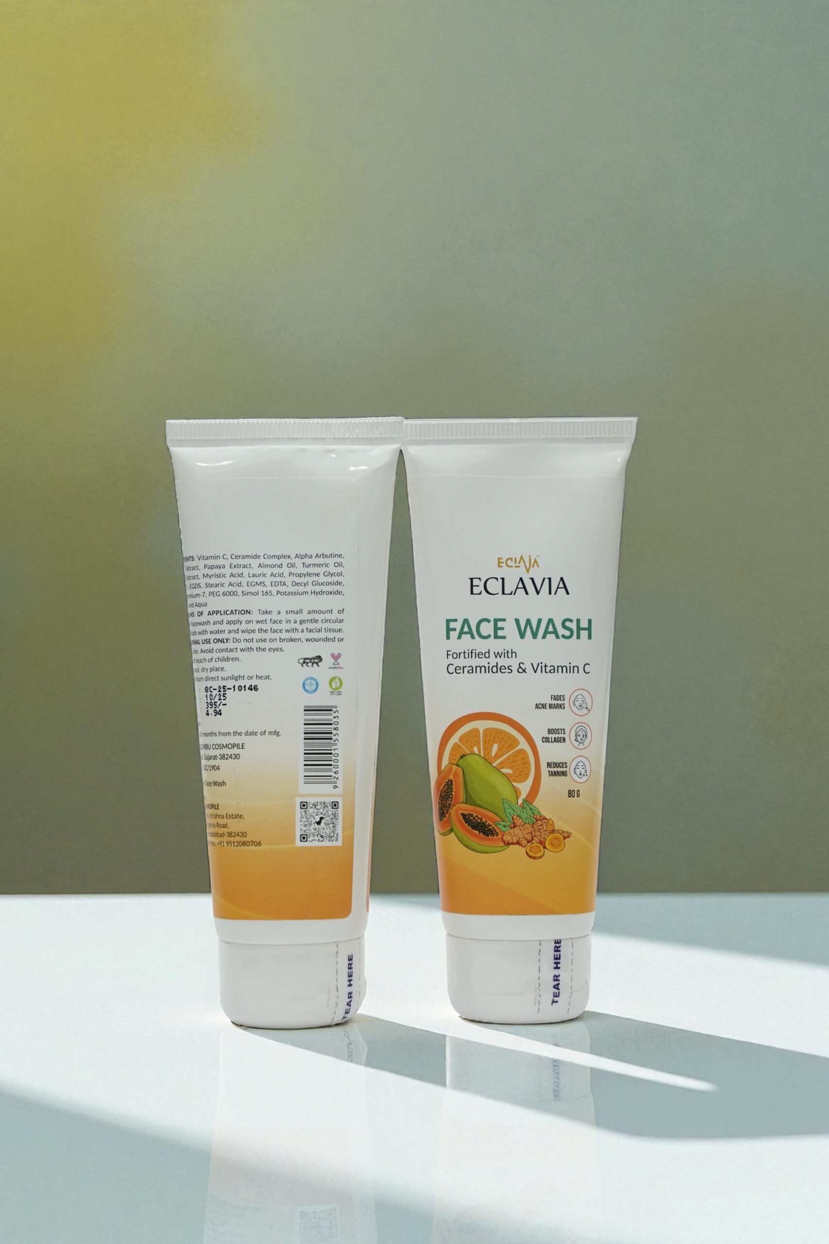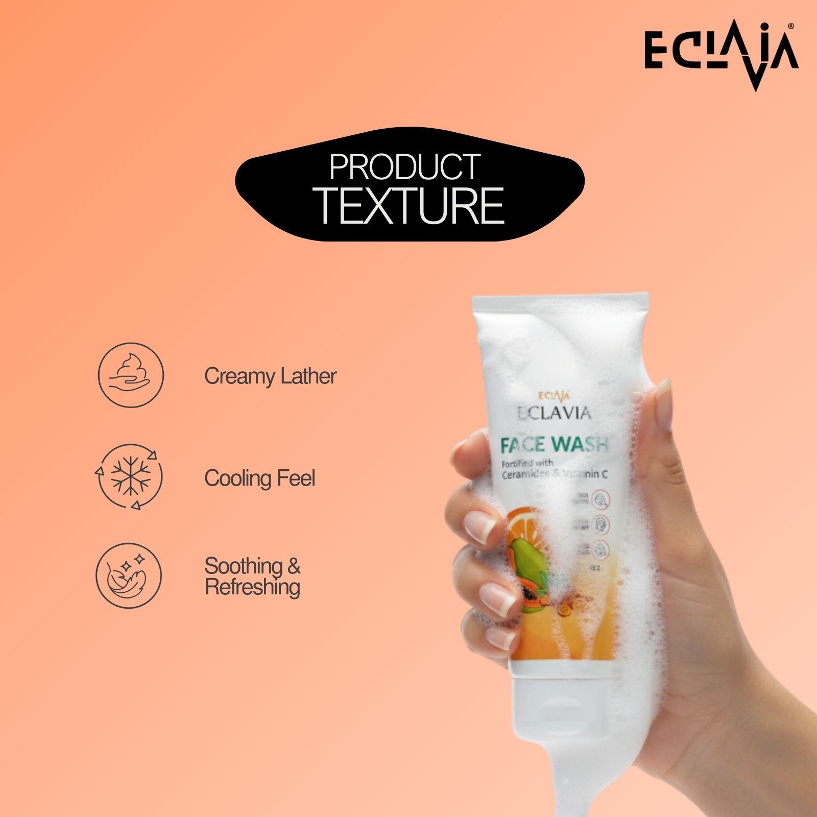 Refresh and revive dull skin with ECLAVIA Brightening Face Wash. Powered by Vitamin-C, Ceramides, and Alpha Arbutin, it gently cleanses impurities, reduces dark spots, supports skin barrier health, and leaves skin smooth, soft, and visibly brighter.