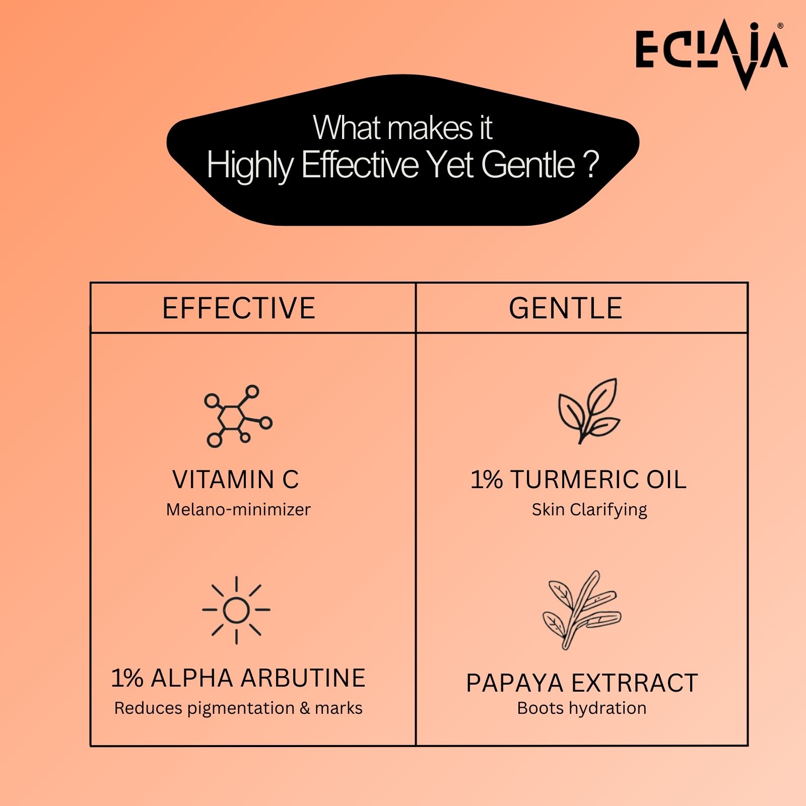• Brightens & evens skin tone with Vitamin-C & Alpha Arbutin